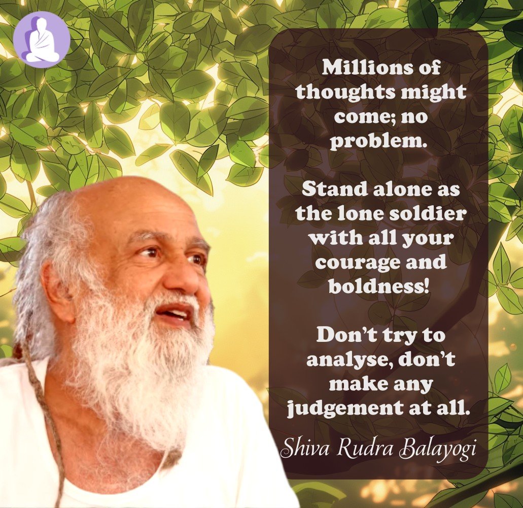 If you get to see thoughts and visions coming in the mind –thousands might come, millions might come; no problem. Stand alone as the lone soldier with all your courage and boldness, determination; come what may – nothing to bother. You don’t get involved with them. Don’t try to analyse, don’t make any judgement at all. Let it be good or bad; “Bye-bye, both of you please go, no need for me. I just want to be quiet in my own Self.”